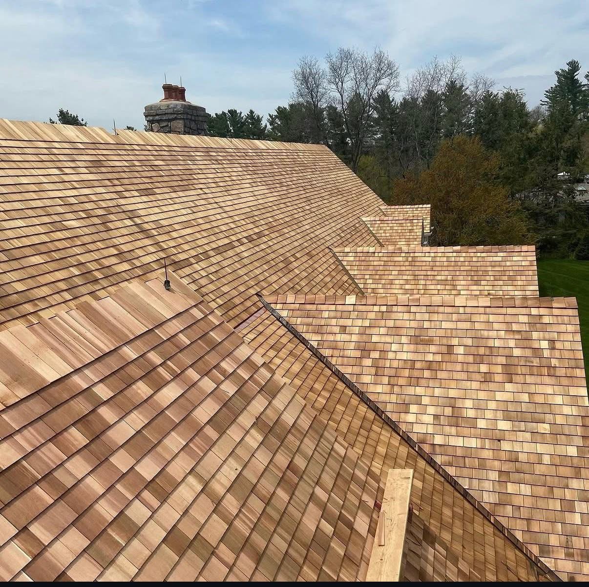 Wood shingle roofing services for residential properties, providing a natural and functional solution installed with precision to ensure proper protection and performance.